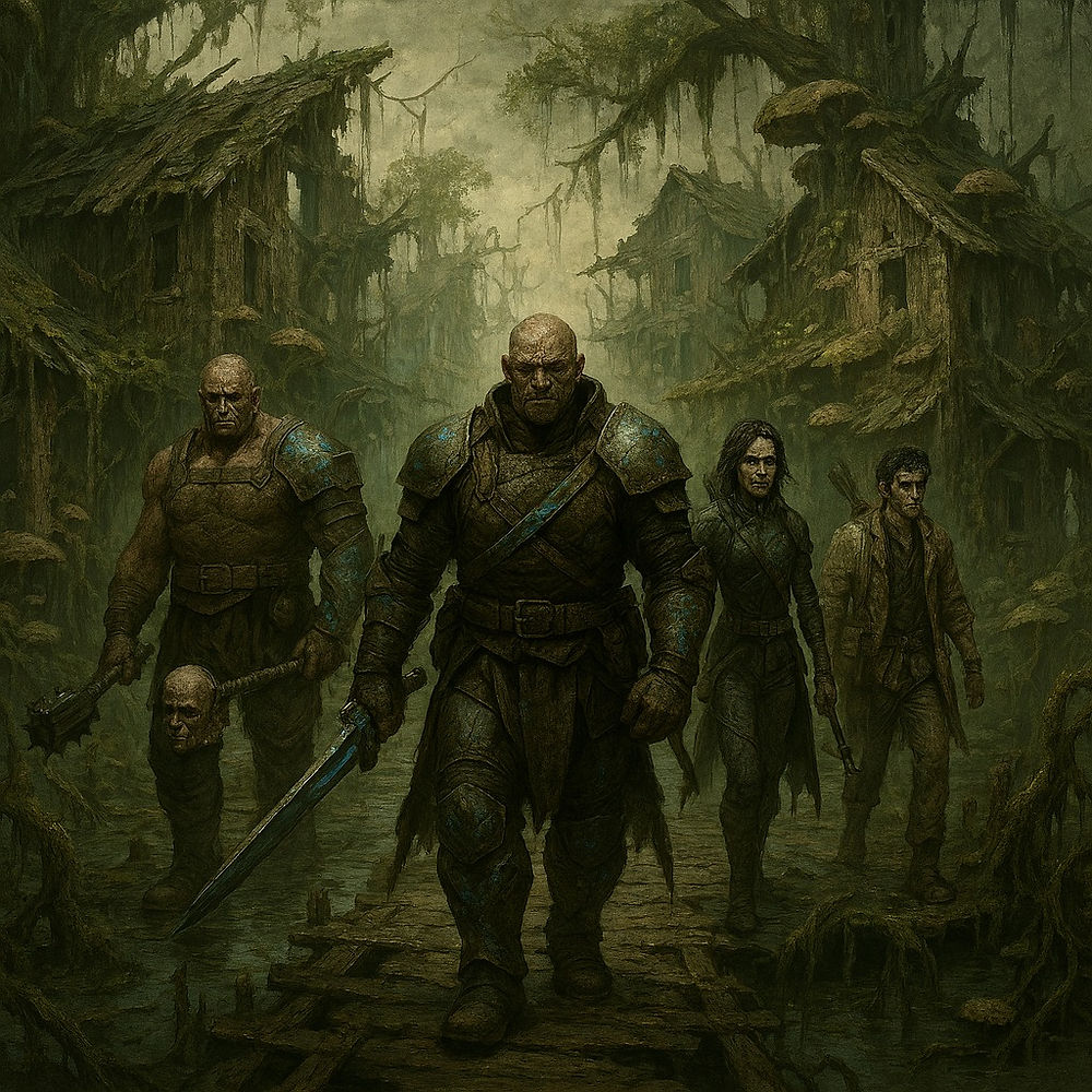 Written by: James K King The Veiled Contract 15th Cycle of Dreadmarrow Season, Year 318 After Fracture Krev Draegon enters the Krugskoll, also known as the Wolf's Circle—a place of mercs, gambling, and blood dealings. Krev shouldered through the warped door frame and descended into the Wolf's Circle. The air thickened—smoke, sweat, and a cacophony of acrid flavors from the myriads of shard-based drugs consumed in this place. Sawdust clung to his boots as he crossed the main h